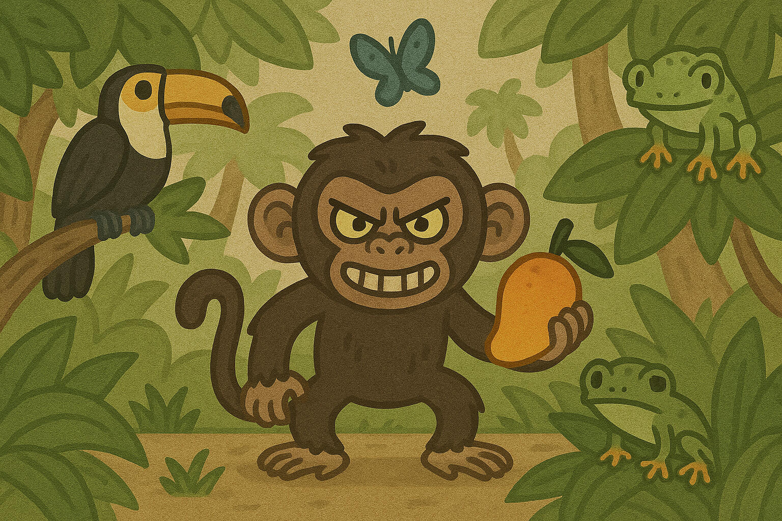 Spinkle: "Oh glorb, I literally just got here and it looks like we've got some trouble..."Mangozilla: "Folks, looks like we have a devious intruder! You’ll never escape my mango madness!"