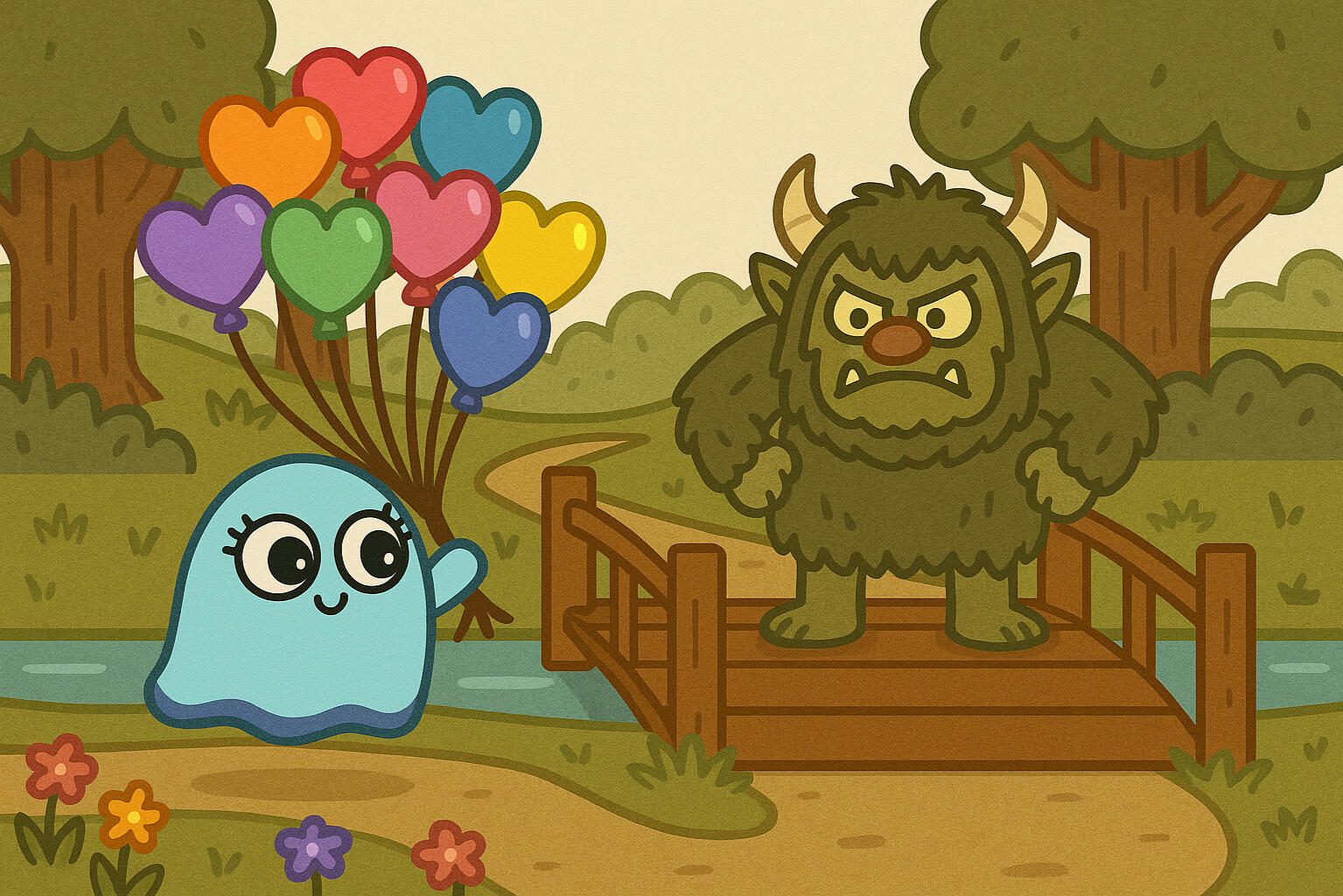 Spinkle: "Oh glorb, I literally just got here and it looks like we've got some trouble..."Mangozilla: "Folks, looks like we have a devious intruder! You’ll never escape my mango madness!"